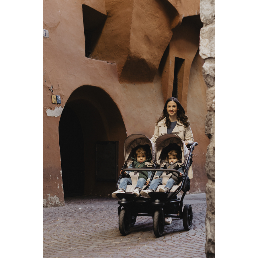 Dettagli del prodotto: Adatto dalla nascita fino a 36 mesi Il successore del successo di tfk Duo, con un'unità combinata ancora più grande e una funzione reclinabile aggiuntiva Accompagna il bambino in modo sicuro e confortevole fin dall'inizio Maniglia in pelle regolabile in altezza (vegan) Ampio tettuccio estensibile Tessuti idrorepellenti e antisporco con protezione UV 50+ Ampia area di seduta e reclinazione ergonomica e traspirante con opzione di ventilazione e protezione UV Telaio leggero in alluminio Freni a disco posteriori Molti vani portaoggetti flessibili Bande riflettenti su tettuccio e cestino Schienale regolabile in continuo Imbracatura a 5 punti Adattamento per i sedili del Gruppo 0 (opzionale) Ruota anteriore piroettante Freno a mano e di stazionamento Poggiatesta e spallacci confortevoli Dimensioni compatte per il ripiegamento Unità combinata convertibile Pneumatici all-terrain Cuscinetti a sfera di alta qualità Sospensioni confortevoli Dimensioni e peso: Dimensioni allestite (lunghezza x larghezza x altezza): 120 x 79,7 x 110 cm Dimensioni ripiegato con ruote (lunghezza x larghezza x altezza): 92 x 79,7 x 49 cm Dimensioni da chiuso senza ruote (lunghezza x larghezza x altezza): 87 x 79,7 x 40 cm Altezza maniglia di spinta: da 75 a 124 cm Seduta (lunghezza x larghezza): 25 x 31 cm Schienale (larghezza x altezza): 54 x 32 cm Peso del prodotto: 19,5 kg Capacità di carico: fino a 22 kg (per sedile) Materiale e cura: Materiale del telaio: Alluminio Materiale del rivestimento: 98% poliestere, 2% plastica Istruzioni per la cura: pulire con un panno umido Incluso nella fornitura: Telaio tfk Duo 2 con camera d'aria Set di ruote Due inserti per sedili sportivi 2 pedane 2 tettucci Attenzione: il manubrio non è compreso nella fornitura!