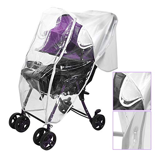 Traspirante: questo design impermeabile del parabrezza con fori di ventilazione su entrambi i lati per impedire al bambino di essere soffocante e ottenere il corretto flusso d'aria necessario.Con la grande finestra trasparente, è ideale per il baby lift dentro e fuori il passeggino e mostra anche una visione perfetta.