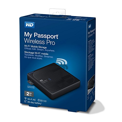 WD 2TB My Passport Wireless Pro, Hard disk Esterno Portatile Wireless, Wi-Fi AC, USB 3.0 - WDBP2P0020BBK-EESN