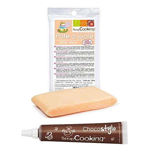 Sacchetto di 100 g di pasta a zucchero pesca SCRAPCOOKING per pasticceria. Con una penna al cioccolato per decorare i dolci.
