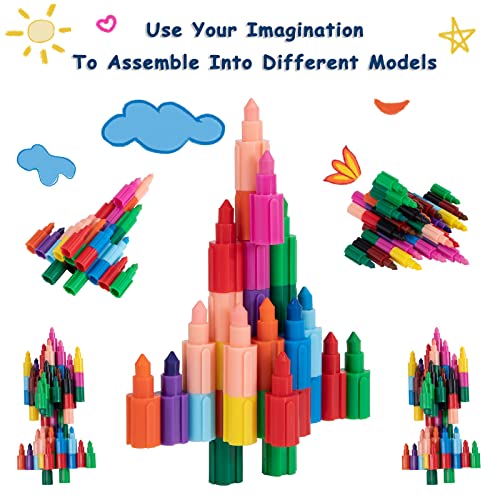Pastelli per Bambini Impilabile, 15 Pezzi Matite Colorate Sottili, 12 Colori Penne Deformabile Giocattoli Blocchi Costruzione per Neonati Ragazzi e Ragazze Disegnare Scrivere Forniture