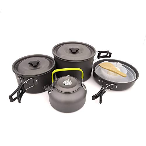 Kit Pasticcio per Pentole da Campeggio, Set da Cucina, Attrezzatura per Cucinare all'aperto, Picnic | Set di Pentole Leggeri (Bollitore, Pentole, Padella, Ciotole, Piatti, Cucchiaio Senza BPA)