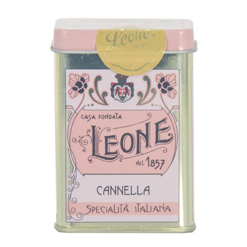 Pastiglie alla cannella nella classica scatola di metallo vintage di Leone