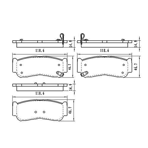 Kit pastiglie freno, freno a disco, asse posteriore per Hyundai Santa, BB08227, larghezza 118,6 mm, altezza 46,7 mm, spessore 14,9 mm, con allarme acustico di usura con accessori, sistema frenante Mando