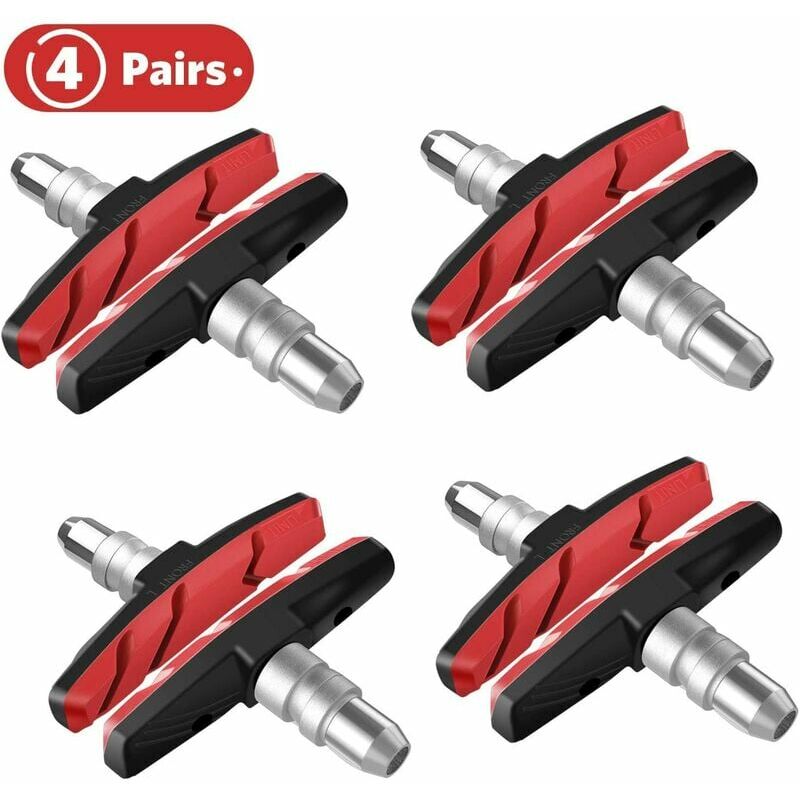Versione migliorata 2020: slot guida sabbia a forma di V? Le esclusive fessure guida sabbia a forma di V possono prevenire danni da sabbia, fango e pietre ai cerchi durante la frenata. Il design leggermente curvo non danneggia la bici e offre una migliore potenza di frenata. Prestazioni di frenata ideali per il tuo ciclismo quotidiano e diverse condizioni stradali. ?Materiale di alta qualità?Con gomma naturale, resistente all'usura, decontaminante e fonoassorbente, nessun cigolio durante la frenata. Parti in acciaio legato, estremamente resistenti e durevoli per tutte le condizioni atmosferiche Migliore attrezzatura, ciclismo più sicuro, più divertimento! li> Queste pastiglie V-Brake sono ideali per i sistemi V-Brake e sono progettate per fermare la tua bici in modo rapido e sicuro senza cigolii o scivolamenti quando ti fermi rapidamente. Perfetto per ciclisti professionisti e dilettanti. ?Facile da usare? Ogni coppia ha segni di testo chiari a sinistra ea destra. Si