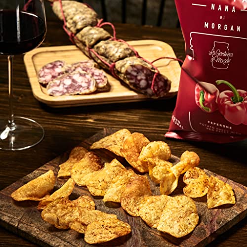 Patatas Nana di Morgan al Peperone - Ideali come Snack per Aperitivi, Antipasti o Feste, Senza conservanti, Senza Coloranti, Senza Glutine e Vegane, Busta da 100 g