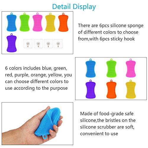 Il pacchetto include:Acquista questo pacchetto e otterrai 6 pezzi spugne in silicone da cucina e 6 pezzi ganci autoadesivi,diventeranno il tuo aiuto preferito per la pulizia della cucina.