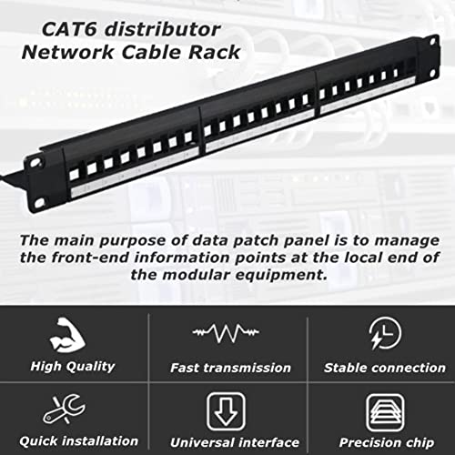 Patch Panel, pannello patch CAT6 da 19 pollici, cavi rack o montaggio a parete Pannello patch Cat6 a 24 porte, pannello di stampa dati montabile, rack per cavi di rete CAT6, acciaio (non incluso modul