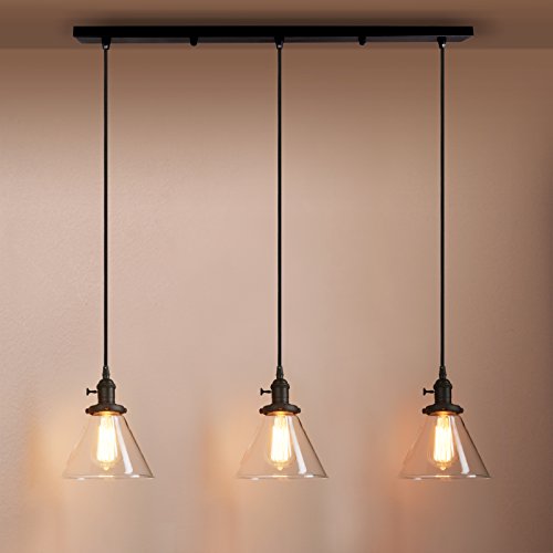 Pathson 3 Imbuto Retro Design trasparente vetro interno - Lampada a sospensione Vintage industriale loft lampada a sospensione Lampade a sospensione Lampade a sospensione, Schwarz Farbe