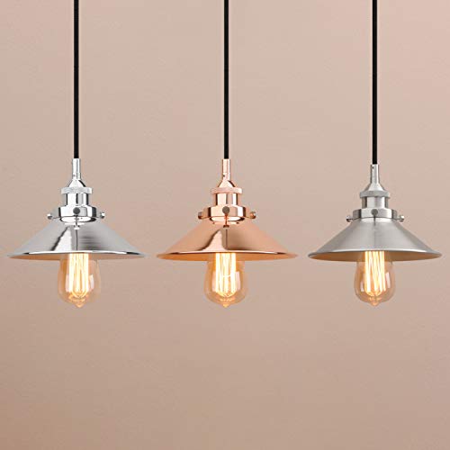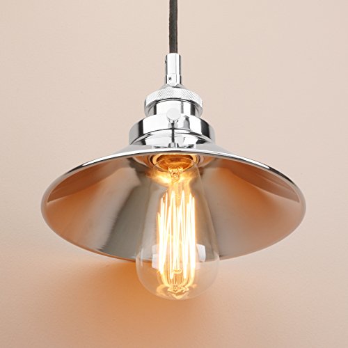 Pathson 8.7" Lampada a sospensione industriale con paralume in metallo, plafoniera sospesa Cafe Bar Loft, lampadario con lampada da cucina per soggiorno (Chromed Sliver)