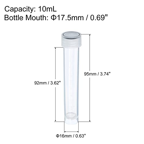 PATIKIL 10mL Plastica Test Provette, 12pz Congelato Contenitore Stoccaggio Trasparente Vite Tappo per Lab Laboratorio Scienza, Trasparente