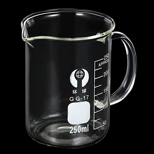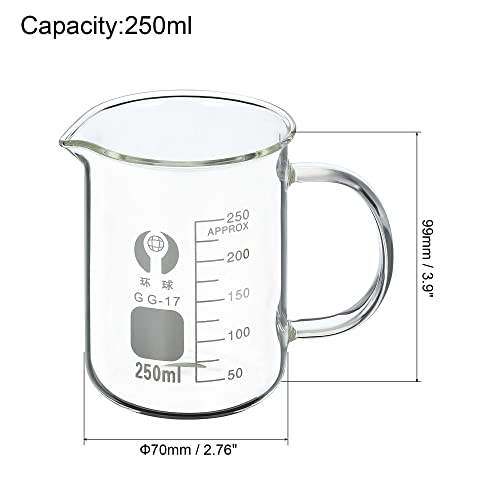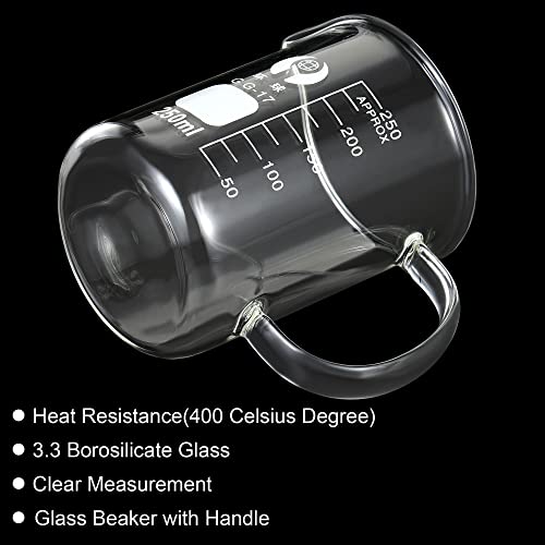 PATIKIL 250ml Vetro Bicchiere con Manico, 3.3 Borosilicato Vetro Graduato Stampato Scale Misurini Tazze con Beccuccio per Cucina laboratorio liquidi