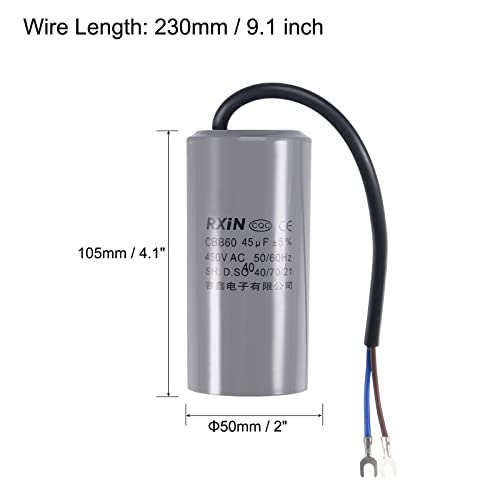 PATIKIL 45uF 450V AC CBB60 Esegui Condensatore con Terminale Cilindro 2 Fili 50/60Hz per Aria Compressore Acqua Pompa Motore