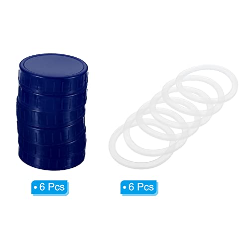 PATIKIL 70mm / 2-3/4" Normale Bocca Plastica Muratura Barattolo Coperchi, 1Set/6pz Inscatolamento Barattoli Tappi con Silicone cerchio Tenuta per Cucina Stoccaggio, Drak Blu