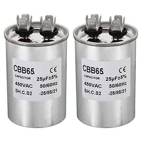 PATIKIL CBB65 25uF Corsa Condensatore 25mfd 2pz CA 450V Alluminio Custodia con 2 Pins per Aria Condizionata Compressore Motore Calore Pompa Condensatore