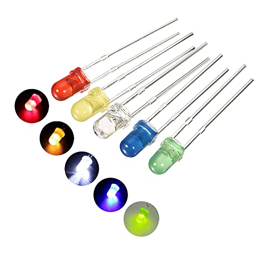 PATIKIL 3mm x 5 Colori LED Diodo Luci 100pz Luce Emissione Diodo Cilindro Testa Lampadine Set per DIY Progetto Indicatore