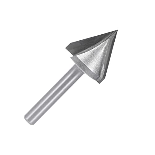 PATIKIL 60 Gradi 22mm Dia V-Scanalatura Router Punta, con 6mm Gambo Titanio Acciaio Inclinato V Scanalatura Punta, Grigio