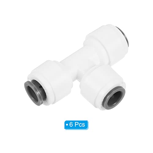 PATIKIL 1/4" Pressione Collegamento Tubo Raccordi, 6pz T Forma Acqua Linea Raccordo per RO Sistemi Acqua, Bianco