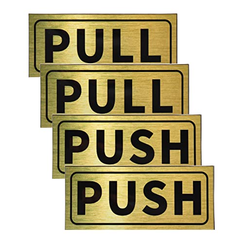 PATIKIL Segnali per porta push-pull, 2 set da 5 x 12,7 cm, in PVC, autoadesive orizzontali, impermeabili, per affari, uffici, negozi, negozi, porte in vetro, dorate