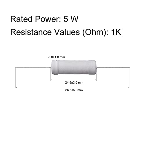PATIKIL 1K Ohm 5W 5% Tolleranza Resistore, Metallo Ossido Pellicola Resistori, Albero, Fiamma Prova per Fai-da-te Elettronica Progetti e Esperimenti 10pz
