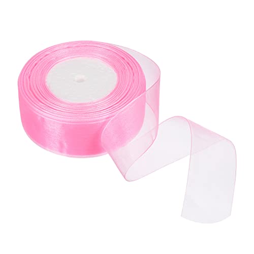 PATIKIL Velato Organza Nastro 1-37/64" 50 Iarde, 1 Rotolo Chiffon Decorazione Tessuto per Regalo Confezioni Artigianato Matrimonio Bouquet, Rosa