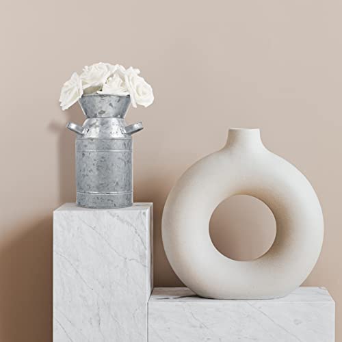 PATKAW Francese Shabby Chic Decorazioni Latte Latte in Fiore Pentola per di Latte per Il ' (Grigio) Latta Del Latte Vintage Barattolo Zincato