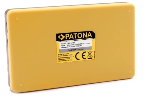 PATONA 1968 Caricatore USB doppio - compatibile con la batteria Canon LP-E6 LP-E6N LP-E6NH (Caricatore USB/doppio USB