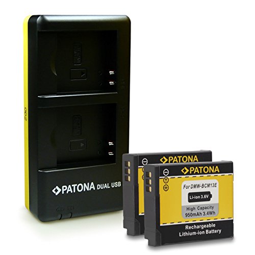PATONA 2in1 Dual Caricabatteria con micro USB + 2x Batteria DMW-BCM13 per Panasonic Lumix DMC-FT5 LZ40 TS5 TZ37 TZ40 TZ41 TZ55 TZ56 TZ58 TZ60 TZ61 TZ71 ZS30 ZS35 ZS40