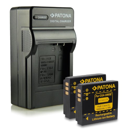 PATONA 4in1 Caricabatteria + 2x Batteria CGA-S005 Compatibile con Panasonic Lumix, Fuji NP-70, Pentax D-Li106, Ricoh DB-60, DB-65