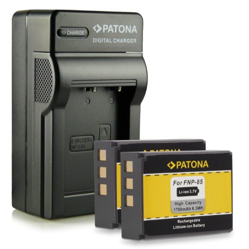 PATONA 4in1 Caricabatteria + 2x Batteria NP-85 compatibile con Fuji Finepix F305 SL240 SL260 SL280 SL300 SL1000
