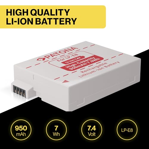 PATONA Batteria LP-E8 Compatibile con Canon EOS 700D, 650D, 600D, Rebel T4i, T5i, Kiss X6i, X7i