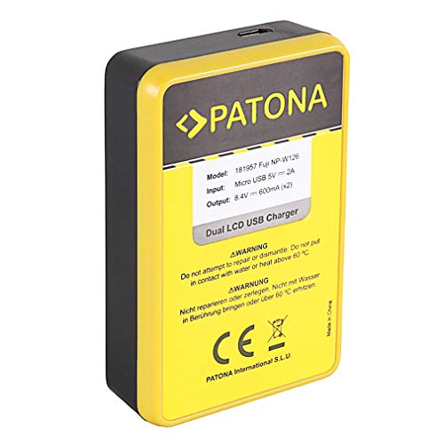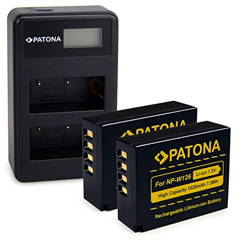 PATONA 2x NP-W126 Batteria con Caricatore Doppio LCD Compatibile con Fuji Fujifilm FinePix HS50EXR HS30EXR XPro-3