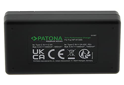 PATONA 2x Platinum Batteria NP-W126S con Caricatore PD Performance Compatibile con Fujifilm FinePix HS30EXR, HS33EXR, HS50EXR, X-T20, X-H1