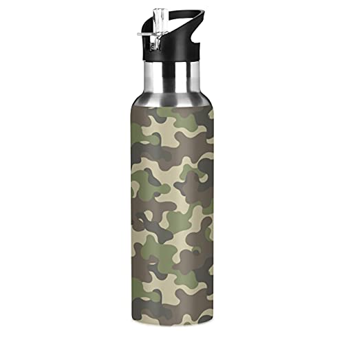 Patriotic - Borraccia militare mimetica con coperchio in paglia, isolata sotto vuoto, in acciaio inox, per tenere caldo e freddo, per sport, palestra, scuola, 567 g