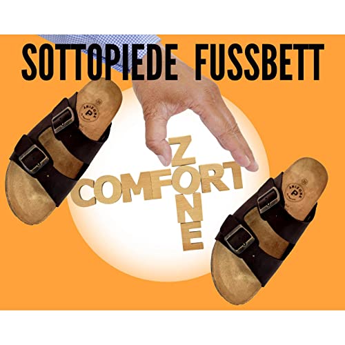 Patrizia Azzi Arizona Ciabatte Uomo Aperte Regolabili Vera Pelle Antiscivolo Fibbie Velcro sottopiede riposante (Nero, numeric_41)