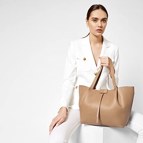 PATRIZIA PEPE Borsa Shopping Bag Pepe City media con Pochette Interna Donna in Vera Pelle Beige