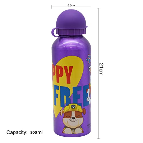 Paw Patrol, Borraccia per bambini, 0,5 l, colore viola, senza BPA e a prova di perdite, in alluminio leggero, per lavoro, palestra, viaggi estivi, fitness, sport e attività all'aperto