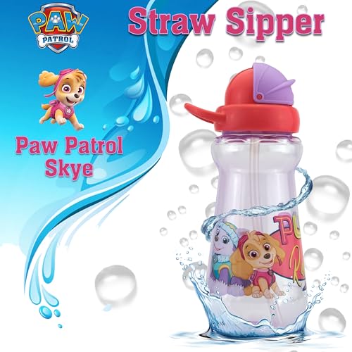 Paw Patrol, 2 bottiglie d'acqua in plastica da 340 ml, senza BPA, con cannuccia, per bambini dai 6 mesi in su (Paw Patrol Chase e Skye)