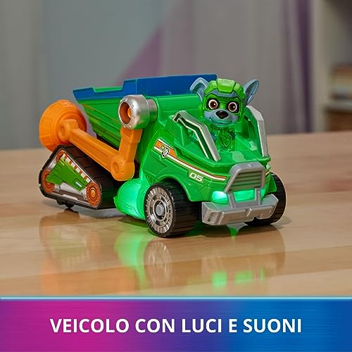 Paw Patrol, Camion dei Rifiuti di Rocky Tematizzato Super Film, con Luci e Suoni, Giochi Bambini e Bambine, 3+ Anni