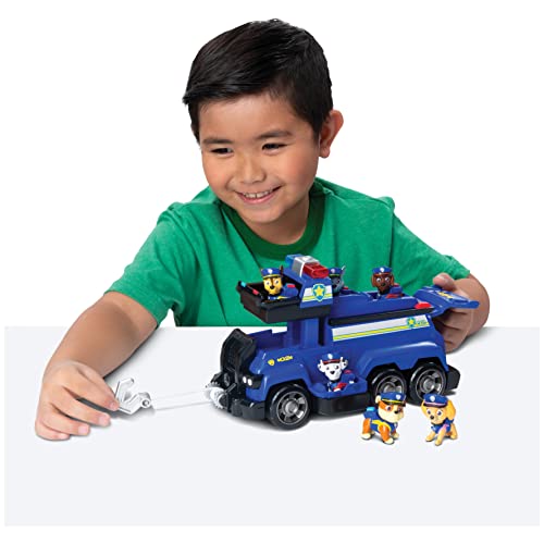 MEGA VEICOLO DELLA POLIZIA PER LA SQUADRA DI CHASE: l'auto di squadra è pronta per un grande salvataggio È equipaggiata con ruote funzionanti, una cabina di guida sollevabile, una barriera spartitraffico estensibile, uno sportellino posteriore apribile e un argano estensibile