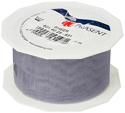 Eccellente rapporto qualità-prezzo: riceverai un rotolo di nastro in organza trasparente color argento Sterling, 27 metri, nastro in 4,1 cm di larghezza da C.E. Pattberg, prodotto in Germania.