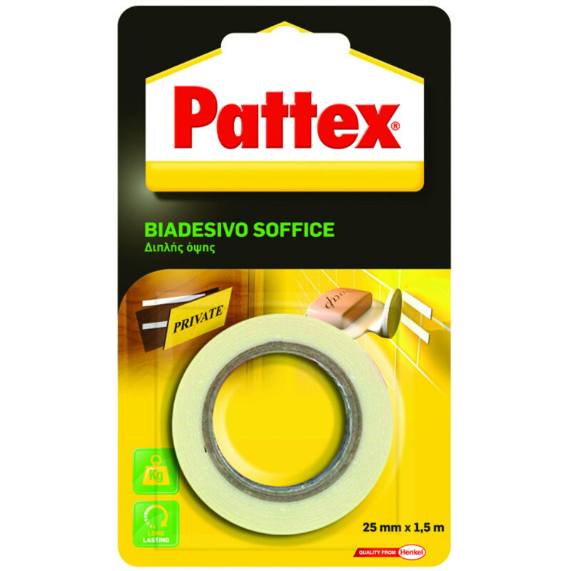 Nastro biadesivo soffice con supporto in polietilene espanso di colore bianco, che presenta elevatissima tenuta ed ottima resistenza allumidit�. � ideale per lapplicazione di accessori da bagno e cucina per il montaggio di piccoli specchi a parete o allinterno delle antine di armadi per il fissaggio di poster, targhette e decorazioni e per lapplicazione di profili in plastica o metallo. 25MMX1,5MT (Quantit� N.1)