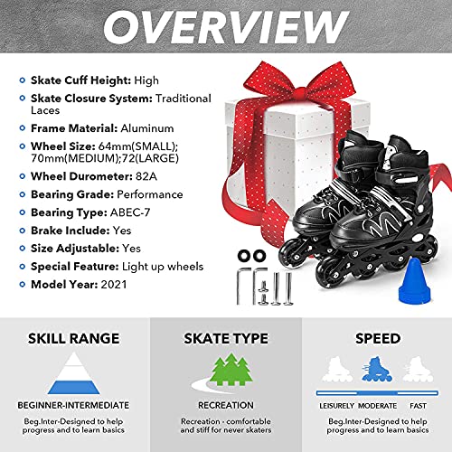 Pattini in linea regolabili, S: EU 26-33. M: EU 33-37. L: EU 37-42.