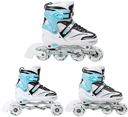 Pattini in linea 3in1/triskates/pattini a rotelle Croxer Novum LED ruote luminose regolabili (Bianco/Menta, 39-42 (24-26,5cm))