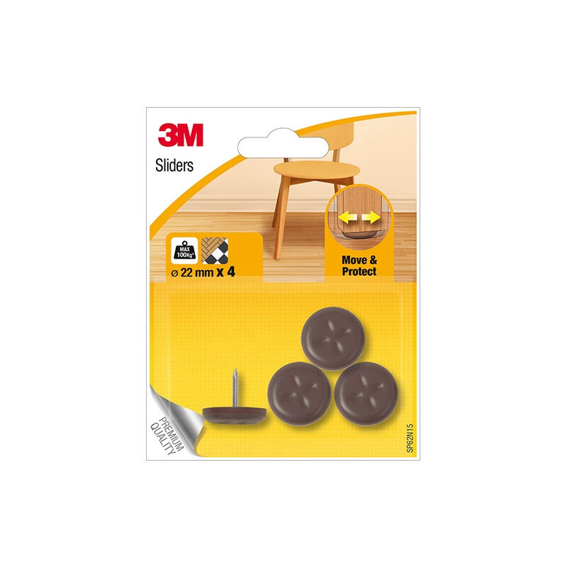 3M - 4 PATTINI PROTETTIVI CLASSICI CON CHIODO D. 22mm I pattini protettivi 3M ti permettono di spostare con facilità mobili ed elettrodomestici su diversi tipi di superfici, prevenendo i graffi e riducendo il rumore durante lo spostamento (-20 dB). Prodotti con materiali ultra resistenti per una maggiore durata. L'esclusiva struttura con perno sferico e schiuma ammortizzante dei pattini protettivi flessibili, permette di spostare oggetti pesanti su superfici irregolari, come le fughe delle piastrelle o facilitare lo slittamento tra diversi tipi di superfici. MAX 100KG