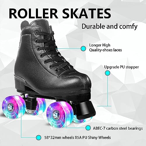 Pattini a rotelle a LED in doppia fila, pattini a rotelle per bambini/donne, cuscinetti a sfera ABEC-7, classici in similpelle PU high-top, comodi per ragazzi e principianti
