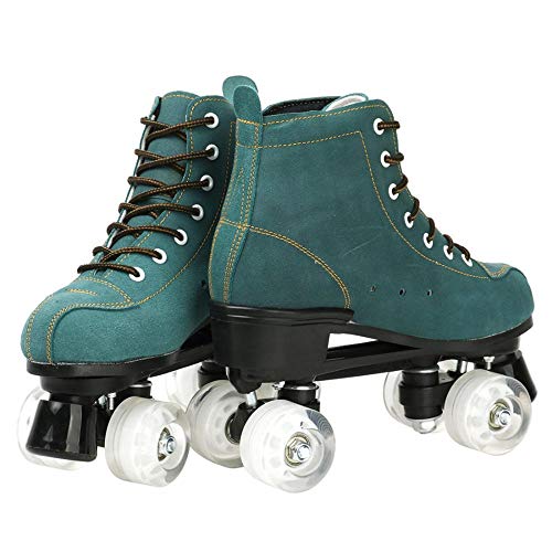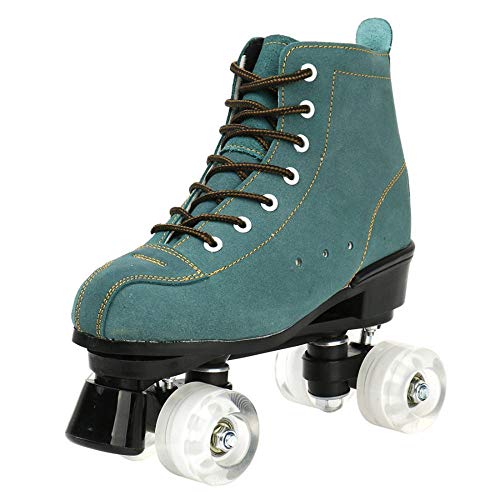 Pattini a rotelle per ragazze Pattini a rotelle per ragazzi in pelle artificiale lampeggiante Pattini per quad per adulti per principianti all'aperto per interni-Ruota nera verde_45