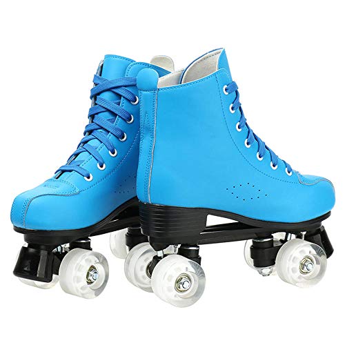 Pattini a rotelle ragazze Scarpe da ginnastica in pelle PU Pattini da allenamento per ragazzi 4 ruote luminose pattini a rotelle per adulti-Trasparente blu_39