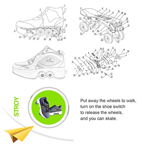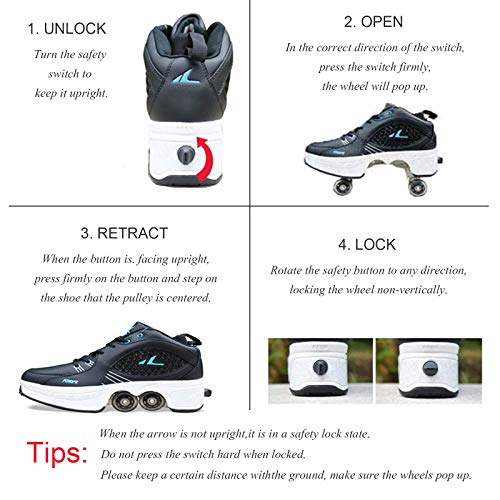 Multifunzione: questa scarpa è una combinazione di scarpe sportive, pattini a rotelle e scarpe deformate. È possibile utilizzarlo come scarpe sportive o pattini a rotelle. Il design pieghevole deformabile consente di avere un'esperienza diversa.