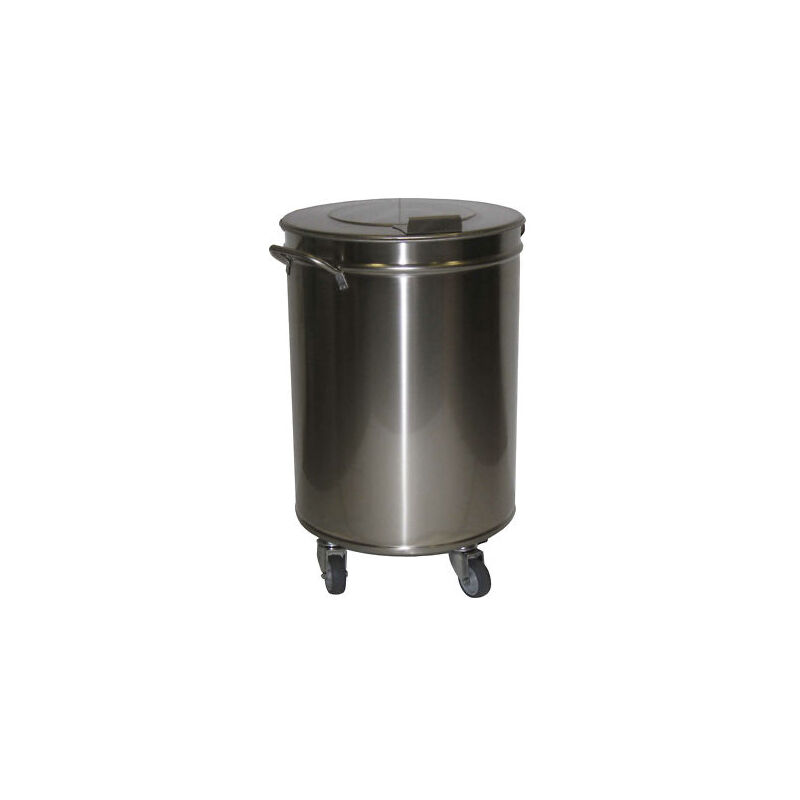 Codice RS1617 - Pattumiera carrellata in acciaio inox da 100 lt, modello FO-AV4669, diametro cm. 46x70h. Completa di coperchio stampato, ruote piroettanti, fondo a tenuta stagna.